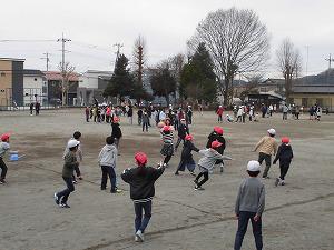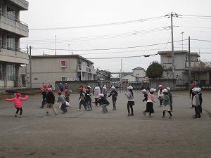 すべての児童が外に出て、学級ごとで決めた遊びをしました。太陽のない寒い日中でしたが、元気な声が校庭中に響きわたっていました。途中で半袖になる児童もいて、子どものエネルギーはすごいと感心しました。遊びから、いろんなことを学んだ自分の小学生時代を思い出しました。