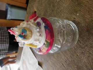 今日は同時に「工作教室」も行われ、地元の学習支援ボランティアさんが主になって指導していただきました。紙粘土で魚やカニなどの海の生き物やケーキなどのスイーツを作り、色付けし貼り付けて、フォトフレームや小物入れビンができあがりました。