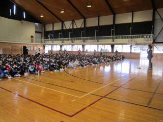 明後日4月18日は、本校、そして地域の方々にとって忘れられない悲しい日です。7年前、登校中の6人の児童の尊い命が交通事故によって奪われました。本当に悲しく残念な事故でした。そのことは在校生にも語り継ぐべきであり、命の尊さを深く考えてほしいという願いから、今年も全校生で「交通安全のつどい」を行いました。学校長の話の後、2年生以上の代表児童が交通安全の作文を発表をしました。全校で黙祷を捧げ、交通安全の4つの言葉「交通安全のバトン」を全員で復唱し、皆で交通安全を誓い、気持ちを引き締めました。命の尊さについて、登下校だけでなく放課後や休日の交通安全や日常の生活安全を例に挙げて確認しました。