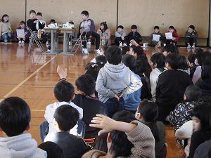 1月21日(火)昼休みに、給食集会が開かれました。児童会の給食委員会が主体となり、食に関する興味や関心を高めることや調理員さんへの感謝の気持ちをあらわすことを目的に行われました。