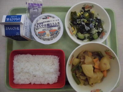 本日も、午後2時ごろから雷雨や竜巻の予報が出されていることから、児童の安全確保の観点から早めに下校をさせます。給食は、食欲が増すメニューとなっています。