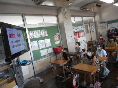 1学期終業式は、校長室からオンラインで各教室に配信する形式で行いました。