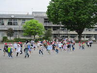 2年1組では、4時間目に体育「50m走」、5時間目に外国語活動「せいかいのうたをたのしもう」を行いました。