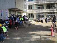 講評では、「おかしもち」の意味、「自分の命は自分で守る」ことの大切さを話がされました。次回の訓練では、放送施設が使えない状況やけが人が出た場合など、いろいろな条件のもとでの訓練を実施したいと思います。