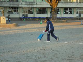 今日の放課後、職員会議の終了後、校庭や学校周辺で、職員達が手分けして、明日の「持久走大会」の準備作業を行いました。