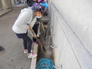 学級では、物品が入っている棚やロッカーを空けてきれいにしたり、机や椅子の脚の裏の汚れを落としたり、児童玄関の靴箱や傘立ての砂や土を取って濡れぞうきんで拭いたりしました。