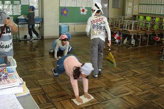 午前中の児童集会の中で、縦割り班清掃について1年生から6年生の顔合わせをしました。そして今日からさっそく1年生が清掃活動に加わりました。上級生に掃除の仕方を教えてもらいながら、一生懸命に取り組んでいました。