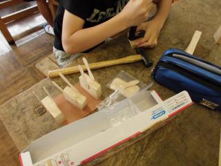 金づちは大きくゆっくり打ったり、細かく小刻みに打ったりすることがありますが、どんな作業の時にどう使うかを考えたり、教え合ったりしていました。皆、無駄話をすることもなく、集中していてすばらしいと思いました。