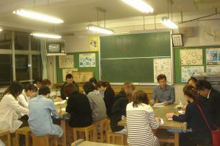クラスのみんなをもっとよく知り楽しい時間を過ごすための催しとして「クイズ王はだれだ!決定せん」を開くことになり、その中のクイズの種類や、競い合いや盛り上げ方の工夫、そのためにはどんな係が必要かを話し合いました。自分の発言に理由付けをしてみんなに分かってもらおうとしたり、他の人の発言を引き継いで発言したり、自分の考えを途中で修正したりして、しっかりした話し合いが行われました。計画委員の皆さんも自分の役目をわきまえた動きができていました。放課後は、全職員が外部からお招きした指導者の先生と研修会を行いました。