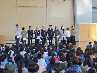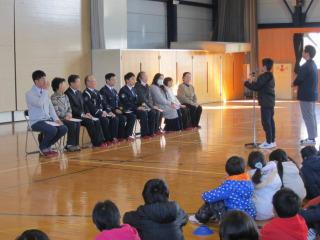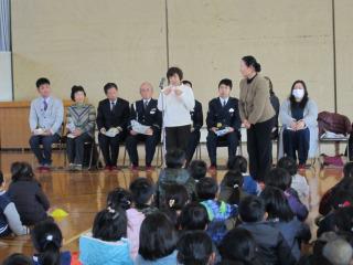 大正時代を約8年10か月、昭和の時代を62年、そして平成を約29年2か月ずっと立ち続けてきた門柱が、たくさんの子供たちを見守ってきたことを知ることで、門柱に笑われないように、多くの先輩方に恥ずかしくないように、この年度末をしっかりと、「感謝」の気持ちを持って過ごしてほしいという話でした。