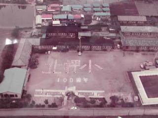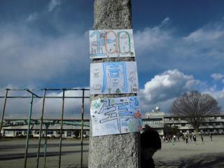 現在地に本校が建てられて100年を迎え、その名残として残る南門のところに、4年生達がメッセージを飾ってくれました。昨日は強い風で飛ばされそうになったのでいったんはずしました。今は、門柱ではなく門扉に針金で留めてあります。4年生のみなさんありがとうございました。