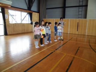 「学校公開日」の今日、1年生が「生活科」の時間に地域の方々から昔の遊びを教えていただきました。集会形式を取って行い、「開会、歓迎のことば、お礼のことば、閉会」と子供たちによる進行体験も盛り込みました。