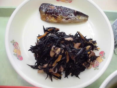 ごはん 牛乳 いわしの梅醤油煮 五目煮 じゃがいもの味噌汁