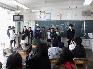 今日は、学校行事等のイベントがなく、ごく普通の日課で子供たちが過ごしています。天気も良く校庭では体育でサッカー、教室では三学期の作品等を持ち帰る作品バックの絵付けなどが行われていました。学級会で話し合って決めたことを、1年生が「1年間ありがとうの会」、6年生が「思い出劇」として実践していました。
