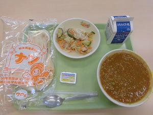 帰校後は、みんな大好きキーマカレーとナンの給食でした。