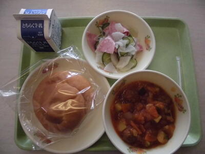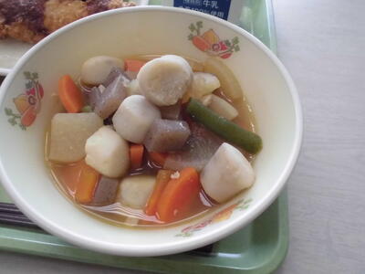 こんな日の給食に、温かな汁ものがありがたく感じます。