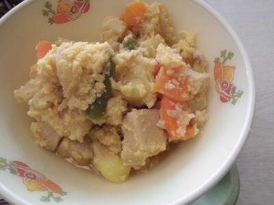 大麦ご飯 牛乳 チキンカレー こんにゃくサラダ