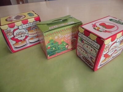 左が「チョコケーキ」 中央が「アレルギー対応ケーキ」 右が「いちごケーキ」