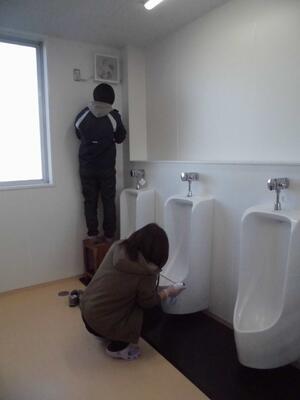 PTA保健厚生部の皆様、教職員が参加し、そして(株)サニクリーン様から2名 アドバイザーとしてご指導をいただきました。これから長く使用するトイレを「きれい」に維持していきたいものです。参加の部員の皆様、ありがとうございました。