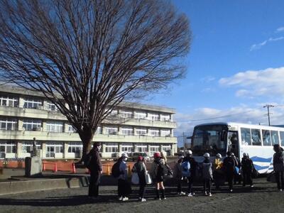 さて今日は、4年2組が板荷の自然体験交流センターに出発です。
