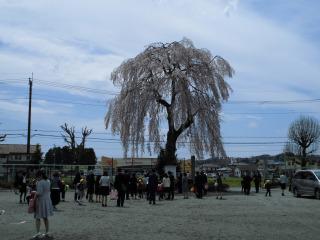 校庭の枝垂れ桜は、上の方に開花が確認できます。いよいよ春本番です。