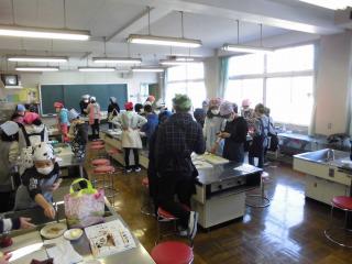 今日と来週に分けて、6年生2学級が給食でテーブルマナーを勉強します。今日は1組が行いました。いつもの特別活動室がテーブルクロスとBGMによってレストランのようになりました。ボランティアの方々にお手伝いいただき、栄養教諭のマナー指導を受けながら、ナイフ、フォーク、スプーン、ナプキン等を実際に扱って給食をいただきました。子供たちは戸惑いながらも楽しい食事の一時となったようです。来週は6年2組が体験します。