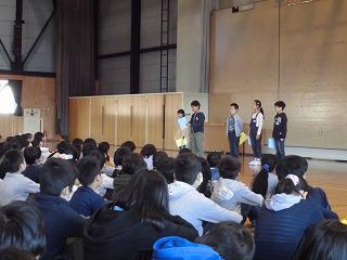 黙祷後、児童からの交通安全に関する作文発表、「交通安全のバトン」の読み上げを行いました。命を大切にする意識を高めることができた集会でした。