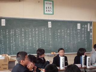 本日は、中1の2授業実施され、どちらも本校卒業生が、司会者等の役割を果たしたり、鋭い意見を発表をするなど大活躍でした。授業に臨む姿勢もすばらしく、目がキラキラしていました。すごい発言に、参観者も「おー」って言ってしまう意見も多くありました。意見が異なったときの意見の聞き方、伝え方、折り合いの付け方など、成長した姿を見せてくださいました。