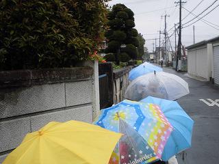 さて、今朝の雨傘をさした登校の様子をお知らせします。
