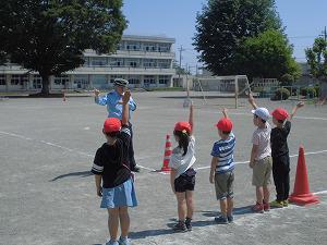 体育では、走る力を伸ばすために各学年毎に工夫して走り方を学んでいます。