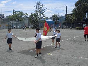 業間に、運動会係会が行われました。朝には、優勝旗などが廊下に出され、いよいよ運動会練習が始まるんだと感じました。いよいよ運動会に向けて動き出しました。