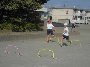 6年生の体育では、ハードルの単元に入りました。どのように跳ぶのかの基本的な動きについて学びました。今日は、低いミニハードルです。真剣さと笑顔が見える授業でした。