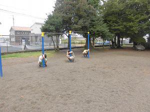 飼育委員会の児童            鉄棒につかまりだんごむし