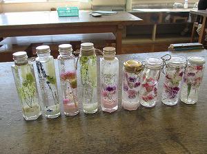 第4回学習会「簡単 ハーバリウムづくり」を行いました。2本作成し、1本目は学校で栽培しドライフラワーにしたセンニチコウ、キャンドルケイトウを使用したものを、2本目は花材を自由に使って作成しました。