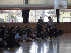 1月21日(火)昼休みに、給食集会が開かれました。児童会の給食委員会が主体となり、食に関する興味や関心を高めることや調理員さんへの感謝の気持ちをあらわすことを目的に行われました。