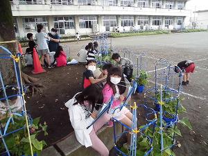植物がすくすく成長するこの時期、児童が育てている植物もぐんぐん育っています。