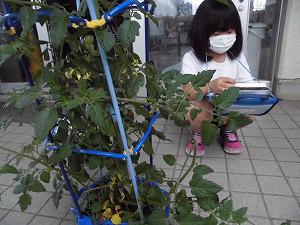 2年生は生活科で、ミニトマト、オクラ、なす、枝豆を育てています。