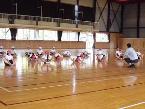 【5年3組】まずは準備運動。股関節のストレッチからです。