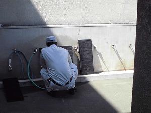 本日は、日差しは強いものの、日陰は心地よい涼しい風が吹いています。そのような中、エアコンが使用できるように、業者さんによるエアコンフィルター掃除が実施されています。気温によりますが、明日から使用できるようにしているところです。