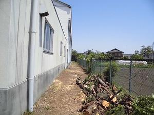 先日も掲載しました体育館東側の樹木伐採が完了しました。