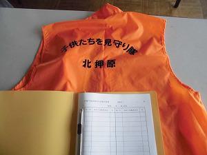 さて、例年4月に配布していました「子どもたちを見守り隊」のベスト及び記録用ファイルを、本日に各通学班長の児童に配布しました。PTA活動として、通学班ごとに、特に下校の見守りをお願いしているものです。今年度も、児童の安全確保のためにご協力をよろしくお願いいたします。
