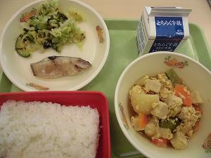 ご飯 牛乳 肉じゃが 豆腐サラダ