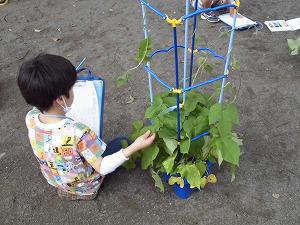 観察をしながら水やり。自分の育てているものはたいへん気になるようです。