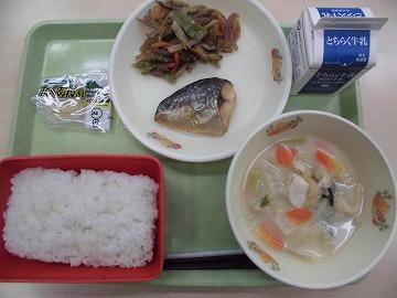 ご飯 牛乳 鯖の塩焼き きんぴらごぼう 飛鳥汁 たくあん