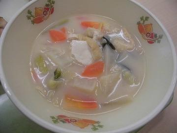 ※飛鳥汁‥奈良県の郷土料理で、鶏ガラ出汁に牛乳を加え、白味噌で味をつけた具だくさんの汁です。