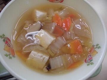 今日のメニューの「のっぺい汁」は、日本全国で親しまれている郷土料理の1つです。もとは、肉や魚を含まない精進料理の1つで、そこにとろみをつけた具だくさんのしるもののことです。里芋、大根、白菜、ねぎの冬が旬の食品が入っています。具だくさんで栄養たっぷりな汁物です。