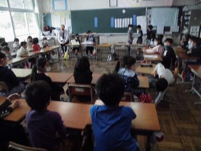 1年生は入学して3週目に入りました。今日は、学校の中の様々な部屋を探検しましました。わくわくしながらも、静かに見学しているようすが立派でした。写真は、校長室にも来てくれたときの様子です。