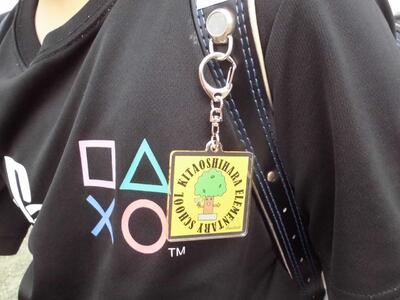 さて、今回は、登下校班の班長さんと副班長さんの自覚をしっかりもってもらうため、そして誇りをもってその役割を果たしてもらうために、アクリルキーホルダーを着用してもらうことにしました。