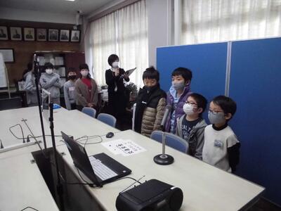 ※放送をしているのは児童指導主任。冬休みのテーマ「安全」についてお話をしました。