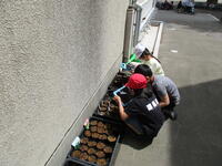 〇 2年2組 生活科 トマト、シシトウなどの苗植えやエダマメの種をまいていました。これから毎日、水をあげるなど世話をすることになります。子どもたちは、収穫が楽しみのようです。